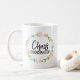 Funny mug for professional women or moms. The text says "Chaos Coordinator" and there is watercolor floral wreath around the text. Great gifts for mothers or teachers! Feminine and humourous design.