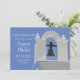 A Save the Date Announcement featuring a crisp, white belfry against a bright blue sky.