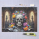 An intricate tissue paper design featuring a majestic skull clad in armour, adorned with vibrant, colourful flowers that bloom from its crown and shoulders. Set against the backdrop of a gothic church, with towering arches and dark, intricate details, this design evokes a haunting beauty. The contrast between the cold steel of the armour and the lively, delicate petals creates a sense of life and death intertwined. Perfect for decoupage projects, this tissue paper adds a touch of elegance and mystery to any creation.
