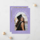 Modern and whimsical graduation announcement photo card featuring an arched frame photo on the front and 1 on the back. The text says "Chapter Complete" with hand drawn stars. Add the graduate's name, information, and message to personalise this card. Lilac background.