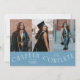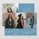 Modern and elegant graduation announcement photo card featuring 3 photos on the front and 1 on the back. The typography curved text says "Chapter Complete." Add the graduate's name, information, and message to personalize this card. Denim blue background.