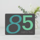 Big blue and mint green numbers that you can customise to read whatever age you want on a charcoal grey background on front, a mint green back with charcoal text that you can easily customise with your birthday party information on back. This easy to customise birthday invitation is great for any age from 21st to 30th birthday, 40th birthday, 50th birthday, right up to the 99th birthday!