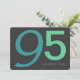 Big blue and mint green numbers that you can customise to read whatever age you want on a charcoal grey background on front, a mint green back with charcoal text that you can easily customise with your birthday party information on back. This easy to customise birthday invitation is great for any age.