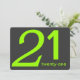 Big lime numbers that you can customise to read whatever age you want on a charcoal grey background on front, a lime green back with charcoal text that you can easily customise with your birthday party information on back. This easy to customise birthday invitation is great for any age from 21st to 30th birthday, 40th birthday, 50th birthday, right up to the 99th birthday!