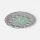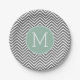 Charcoal and Mint Green Chevrons Custom Monogram Paper Plate