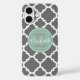 Charcoal and Mint Quatrefoil Pattern Monogram Case-Mate iPhone Case