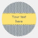 Charcoal and White with Yellow Chevron Classic Round Sticker