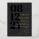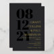 Elegant typography wedding invitation in charcoal grey with your wedding date in large black numbers down the side of the invitation. Add names and wedding wording in gold foil. Gold foil and dark grey wedding invitation with your names in a large font.