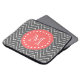 Preppy, modern, charcoal grey and white chevron pattern with coral circle tag and elegant monogram initial you can customise. GraphicsByMimi©
