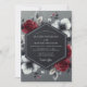 Evoke a mood of dramatic romance with this artistic floral design. A sophisticated palette of charcoal grey and deep crimson is softened by delicate white anemones and muted foliage. The painterly arrangement of lush roses and blooms creates an atmosphere of gothic elegance for your special union.