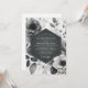 This elegant design showcases a dramatic monochrome floral arrangement. Exquisite anemones and roses are rendered in shades of charcoal, graphite, and soft white, creating a moody and sophisticated aesthetic. The artistic, etched quality of the blossoms offers a timeless and romantic feel for your special union, perfect for a classic affair.