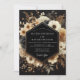This elegant design features a dramatic floral arrangement against a deep charcoal backdrop. A lush bouquet of cream, beige, and dusty blue anemones and dahlias creates a moody, romantic atmosphere. Delicate gold-toned foliage adds a touch of warmth and sophistication for a memorable union.