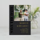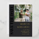 Elegant typography wedding save the date in charcoal grey with your photo and a clean typography design in black and gold foil. Photo typography save the date personalised with a photo and your text in gold foil letters. Masculine photo save the date in a dark colour palette with the text printed with gold foil.