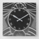 "art deco clock", "art nouveau clock", "dark charcoal grey grey", "1920s geometric symmetrical lines", "stylish sophisticated 1920 style", "black and white", "retro vintage luxurious antique", "elegant line pattern design", "glamourous glam square clock", "classy classic glamour"