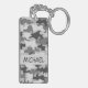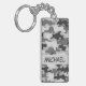 Enjoy this fun and stylish keychain personalised with a name and a sophisticated and trendy camo design. This camouflage is original art in shades of grey (grey), charcoal, pewter and silver colours A light grey strip provides an area to personalise with your name, monogram initials or other words of your choice such as business name or saying. This cute and trendy camo design is by artist and fabric designer Phyllis Dobbs and is available in red, turquoise, blue, lime green, olive green, pink, orange and brown camo on various products for your enjoyment or for great gifts. Have fun with camouflage! Fully customisable for personalisation.