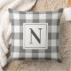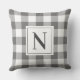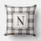 Charcoal Grey Gingham Check Monogram Initial Cushion