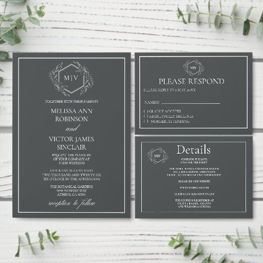 Charcoal Grey Monogram Crest Wedding SuiteDesigned by Phyllis Waugh