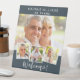 Charcoal grey photo collage birthday party welcome pedestal sign