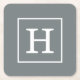 Charcoal Grey White Framed Initial Monogram Square Paper Coaster