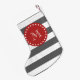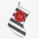 Charcoal Grey White Stripes Pattern, Red Monogram Small Christmas Stocking