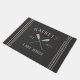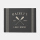 Welcome guests to your lakeside abode with this charming rustic doormat that's perfect for your lake house or vacation home. Personalized design features your family name in neutral tan lettering, along with your year established and a pair of crossed oars. Rope stripe detailing on a rich charcoal grey background completes the design.