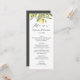 Elegant and romantic , this wedding dinner menu card design features a frame of watercolor olive green and yellow lemons and foliage.
