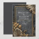 Invite your guests to a night of stunning opulence with this charcoal marble gold metallic tropical leaf invitation. This sophisticated design is dominated by a dramatic dark grey marble texture, beautifully cracked and veined with shimmering metallic gold accents that instantly convey luxury. The central text area is defined by a clean, double line gold geometric border. The bottom and top corners are richly decorated with bold tropical foliage, including an oversized fan palm and stylised leaves, all rendered in a dazzling metallic gold and bronze texture. This is the perfect stationery for a glamourous black tie, modern tropical, or VIP lounge style event. You can effortlessly use this gorgeous invitation to share your ceremony details, to include reception information, to provide directions to your venue, or to define your elegant dress code. The versatile design is also suitable for a high-end corporate gala, a luxury New Year’s Eve party, a stylish milestone birthday, or a sophisticated boutique brand announcement.