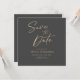 Elegant Charcoal Modern Save The Date Invitation is designed for those who fashion elegance and simplicity! Announce your event in style! Trendy minimalist simple square style for elegant wedding events. Features elegant script front with "Save the Date" saying in gold. Combine with other items from the Minimalist Elegant Script Wedding invitations collection. ©EpicSparkle