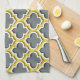 Charcoal Pineapple White Moroccan Quatrefoil #5DS Tea Towel