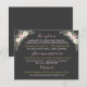 Present your reception, accommodations, and wedding website information on this elegant details card featuring corner floral arrangements of rose pink peonies and sage greenery on a rich charcoal background. Pink calligraphy headers and cream text create a beautifully organised layout against the dark backdrop. All text is fully customisable. Designed to coordinate with the matching charcoal floral suite.
