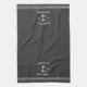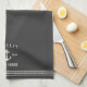 Customise your beach house kitchen with this cute personalised towel featuring your family name or house name and year established in soft ivory lettering accented with a nautical anchor illustration on a charcoal grey background.