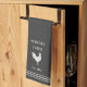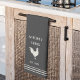 Celebrate life on the farm with this cute personalised kitchen towel featuring your family name or farm name and year established in soft ivory lettering accented with a chicken illustration on a charcoal grey background.