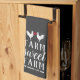 Celebrate life on the farm with this cute personalised kitchen towel featuring the phrase "farm sweet farm" in white lettering accented with a pair of chickens and a red heart. Customise with your family name and/or year established beneath.