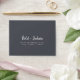 Modern minimalist wedding RSVP envelope feature bold handwritten brushy script bride and groom's name in charcoal black and white colour, simple and stylish.