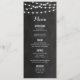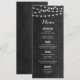 Chic modern summer wedding menu card design with simple elegant glowing string lights hanging across the top and a classy mix of modern and calligraphy script fonts on a printed faux watercolor texture background. A simple and stylish preppy design, perfect for summer! Click the CUSTOMIZE IT button to customise fonts, move text around and create your own unique one-of-a-kind invitation design.