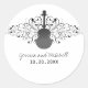 Perfect for a rock and roll themed wedding are these rocker chic Swirls Guitar Wedding Stickers in charcoal grey. This unique design features a striped guitar and flanked by cascades of elegant swirl flourishes. Easy to customise, simply add your wedding details in the text fields provided. Click on the "Customise It" button to find additional personalisation options.