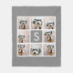 Charcoal White 8 Photo Collage Single Monogram Fleece Blanket
