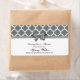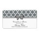 Stylish Moroccan Quatrefoil Trellis Lattice Pattern, Grey Satin Look Bow Ribbon Party Water Bottle Label / Wine Bottle Label