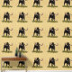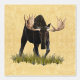 A digital painting of a charging bull moose superimposed on an old paper, or parchment, background image.