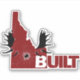 Red Idaho Built with black Moose Antlers crashing through in large print on front with matching smaller print on centre of upper back