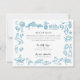 This charming wedding invitation enclosure card features illustrations inspired by downtown Charleston, South Carolina, including palmetto tree and crescent moon, the old Cooper River Bridge, pineapples, sea gulls, pelicans, shrimp, sea turtles, crabs, and shrimp boats. Part of the Charleton Toile Border in Blue wedding suite. All text is editable. Matching designs available.