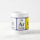 Charlise spelled out as C H Ar Li Se (Carbon Hydrogen Argon Lithium Selenium) on a mug for the scientist in you.