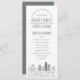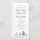 A deco skyline-themed wedding program for a wedding taking place in the beautiful city of Charlotte, North Carolina. This wedding program card features a stylised illustration of the city's unique skyline with its name underneath. This is resting underneath your wedding day information in a matching open-lined style.