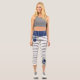 Modern Elegant Black & White Stripes Pattern, blue white waist stripes and asymmetric watercolor navy blue flowers bouquets. More ideas in my Modern Elegant Leggings Collection.