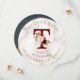 ANY AGE. Unique circular card design featuring burgundy, blush watercolour floral letter (your initial), circular script on a white cream marble background. On the back your photo. Use Personalise tool to add your info, photo, initial and maybe you have to tweak to fit. Add a space between letters and double space between words for this "look". For matching items, please, visit my Modern Burgundy Blush Floral Collection.