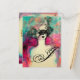Elegant ,whimsical lady with a sophisticated Venetian feather mask in vibrant pink,green,fuchsia,black,white colours, inspired from Comedy of Art (Commedia dell' Arte ) and Carnival of Venice ,watercolor painting with gold and silver foil .Easy to customise with your own text  as a wedding favour   ,save-the-date, thank you, bridal showers, birthday parties: sweet 16,quinceanera ,engagement showers, New Year's Day masquerade party, graduations ,anniversaries,or just about any event you wish!