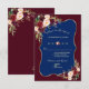 Charm Navy Blue Burgundy Floral Gold Wedding RSVP Card