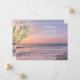 Elegant Share a Memory Card design featuring a charming sunset beach ocean, sea view, palm leaves, as background, Use Personalise tool to add your info. More ideas in my Celebration of Life Sea Ocean View Collection..