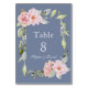Charm Pink Floral Dusty Blue Wedding Table Number
