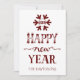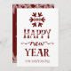 Elegant, ornamental red and white Happy New Year typography, snowflake, pine and cones! Use Customise tool to add your text, celebration year, family name.